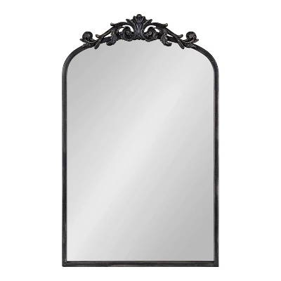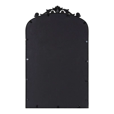 The Arendahl wall mirror brings a brilliant and decadent accent to any traditional home design. This wall mirror features a baroque-inspired design, with a resin garland crown cascading down an arched iron frame. The antique black finish brings it together as a vintage piece to display anywhere in your home. Showcase it in your living room, bedroom, entryway, bathroom vanity, or dining room for an elegant, conversation-starting focal point. Use the fabulous Arendahl wall mirror to bring dimension to your smaller spaces, opening up the area, and illuminating the darker corners. Proudly exhibit the Arendahl mirror on its own or in multiples, measuring 19 inches wide by 30.75 inches tall, providing enough space to create a fantastic wall statement. This framed mirror is also easy to hang, with a metal keyhole wall hanger discreetly and securely attached to the back. There’s no better way to bring an elegant, old-school design aesthetic to your home than with this beautiful accent mirror. It’ll dazzle your guests and create a permanent statement piece for your living space.