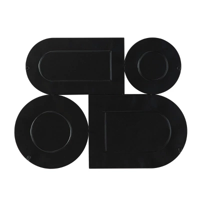 - A brown abstract wall decor consisting of round and semi-oval structure furnished with bamboo strips and raised black metal frames
