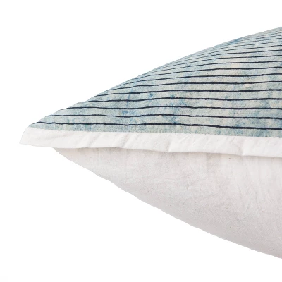 The Revolve pillow collection features inspiring indigo hues and remarkable craftsmanship. The hand-dyed Alicia throw pillow boasts a ticking stripe pattern with eye-catching blot details for a distressed effect. The stylish pillow cover with short flange trim is crafted of soft, relaxed cotton. This accent piece beautifully embodies a global vibe, perfect for any contemporary home.
