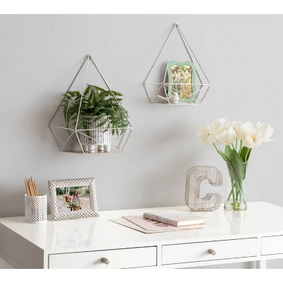 2pc Prouve Decorative Geometric Metal Shelves Silver – Kate & Laurel All Things Decor