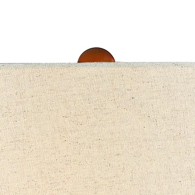 Inspired by a Mid-Century aesthetic influenced by clean lines and a minimalist architectural profile, this stunning ceramic table lamp is topped with an off-white tapered drum shade. The wood material in the neck and base are mirrored in the ball finial on top for a cohesive look. A stylish lighting solution for any room in your home.