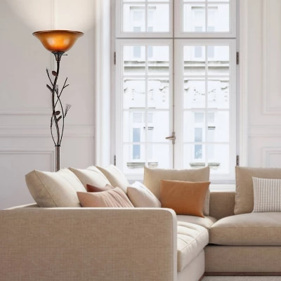 Cal Lighting makes this great pinecone design metal floor Torchiere lamp stands 72″ tall. The rust finish adds to the casual look and looks great with the Amber Glass shade. There is also a matching floor and table lamp. (Sold separately) This lamp uses one 150 watt 3-way bulb which gives you the option to adjust the light level to best suit your needs. (Bulb is not included.) This lamp will be a wonderful addition to your living room, family room, office, or bedroom.