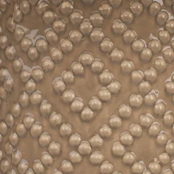 Add vintage flair to any room with your home with this accent tabletop lamp. Handcrafted by artisans, this ceramic lamp features a hobnail texture and diamond patterns across a slender column glazed in an earthy oatmeal finish. Topped a linen shade for a soft contrast and refined glow making it a great addition to your bedroom, living area or office.