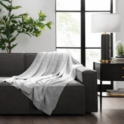 A lightweight layer to cozy up with, our pure cotton knit throw also makes a stylish statement, whether draped over your sofa or folded at the foot of your bed. The heathered knit gives it a homespun look that’s relaxed and inviting.