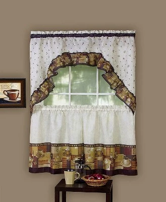 Transform your kitchen into a cozy bistro with the GoodGram Cappuccino Coffee Kitchen Window Curtain Tier Pair and Swag Valance. The charming tier pairs and valance showcase a cappuccino, café and latte print on a linen ground. Vibrant colors are sure to bring your room together in a stunning cafe setting.