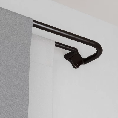 The Double Dusk Curtain Rod features an innovative wrap-around design which helps prevent light leakage by allowing your curtain or drapery panel to rest directly against the wall. Wrap the panel around the curved end of the rod and tuck it behind the bracket to eliminate exterior light from seeping in. Double Dusk is a strong and stable 5/8 inch diameter rod, constructed to hold curtains from light to medium weights, with a maximum capacity of 22 pounds.