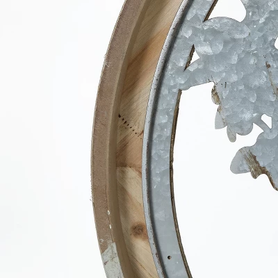 Long considered a symbol of growth and strength, this mounted metal tree of life with roots wall decor is beautifully depicted in gray and brown tones, framed in beautifully distressed wood. The metal tree of life wall art is a meaningful and important symbol to display that expresses what life, family, and home is about. This elegant design represents divine knowledge, personal growth, harmony, and reverence for nature. The gorgeous design of this tree makes a classy, artistic centerpiece on any wall in your home. At 34″ in diameter, this oversized wall decor will make a stunning centerpiece on your wall above your bed, couch, mantle, or entryway. Display in your home office to provide a touch of nature to your space. The tree of life wall decor arrives ready to mount with hardware included.
