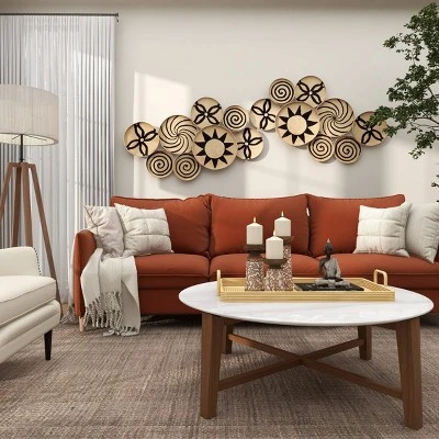Hang this living room wall decor above an end table or sofa to liven up your space. This item ships in 1 carton. Can be hung horizontally or vertically using the metal rings on the back; nails and screws not included. Suitable for indoor use only. This is a single brown colored wall sculptures. Eclectic style.