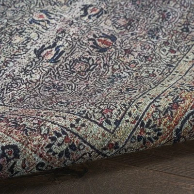 Simply stunning. With its elaborate, Persian-inspired pattern, this washable rug from the Brilliance Machine Washable Collection adds opulent style to your kitchen, entryway, hallway, living room or bedroom décor. The classic, printed design is presented in a blend of washed blue, green, and yellow tones that impart a vintage vibe, flatwoven from durable yarns that are easy to clean: simply toss into a washing machine. Finished with a non-slip back to keep your rug in place.