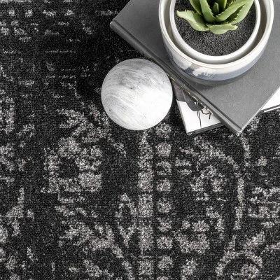 This distressed traditional area rug will be the finishing touch to any room it is placed in. With a beautiful monochrome rosette in the middle of the rug, this floor covering will pair perfectly with any décor from traditional to modern. Machine made in Turkey of soft synthetic materials this rug is built to last. Create the home you have always dreamed of with our pet-friendly and easy to care for area rugs.