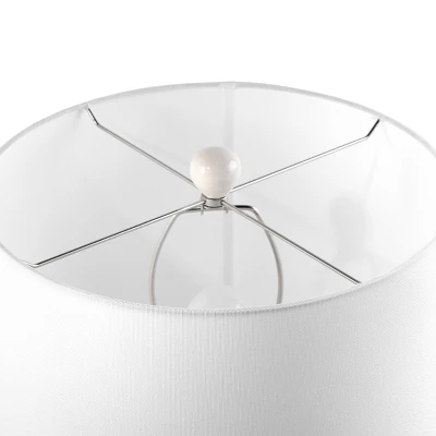 Let your room shine with the addition of this lavish abstract table lamp. It has a Linen Drum shade that delivers bright ambient lighting. Adds a vibrant flair to any room with its cream ceramic finish. It has a 15-inch wide, ivory linen, drum lampshade that delivers soft lighting.