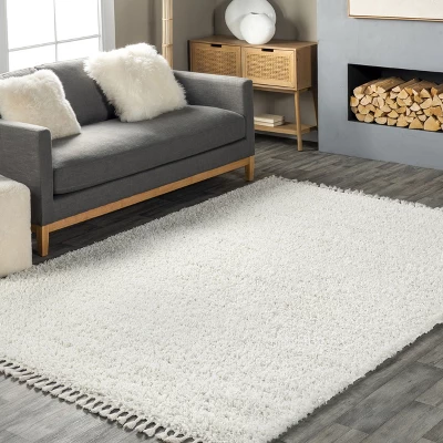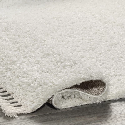 Create a cozy yet fashionable statement with our tasseled shag area rug. The plush pile feels luxurious underfoot and the braided tassels lining the ends add a bohemian feel. Place this floor covering in your bedroom, living room, or in any room that could use some warmth. Prized for their durability and ease of care, synthetic rugs are the perfect choice when spills and constant foot traffic are at the top of your mind. Kick back and relax with our easy to care for and pet-friendly area rugs.
