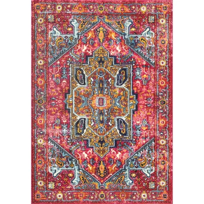 This unique medallion rug is the perfect addition to any space in need of a vibrant pop. Power-loomed from soft synthetic materials this rug is soft to touch and built to last.