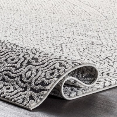 Make a statement with this transitional Moroccan area rug. The intricate geometric motifs make it an ideal enhancement to a modern aesthetic, while also being able to pair with farmhouse designs. Machine made in Turkey from durable soft fibers, this floor covering is built to last while feeling delightful underfoot. Your dream home awaits with our pet-friendly and easy to care for area rugs.