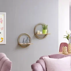 Set Of 2 Floating Rings Wall Shelves Gold – Danya B.