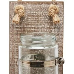 Set Of 2 3.3″ X 5.5″ Rustic Wooden Mason Jar Wall Sconce Set Worn White/Brown – Stonebriar Collection