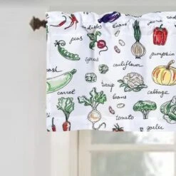 Transform your kitchen windows into a delightful focal point with our Tribeca Valance and Tier Set. This charming 3-Piece set is designed to add a touch of elegance and style to any kitchen decor. The set includes a valance and two tiers, creating a coordinated and polished look for your windows. Crafted with attention to detail, the Tribeca Valance and Tier Set features exquisite designs that are sure to capture your heart. The intricate patterns and delightful colors bring a sense of joy and warmth to your kitchen space. Whether you have a modern or traditional kitchen, this set effortlessly blends in and enhances the overall ambiance. Not only does this set elevate the aesthetics of your kitchen, but it also offers practical benefits. The valance and tiers provide just the right amount of coverage to filter sunlight and offer privacy, while still allowing a gentle glow to fill the room. They also help to minimize the glare on your countertops, making it easier and more enjoyable to work in the kitchen. Crafted from high-quality materials, the Tribeca Valance and Tier Set are designed to withstand everyday use. The fabric is durable and easy to maintain, allowing for simple care and cleaning.This Tribeca vegetables printed 3 pieces kitchen curtain set includes 1 valance 52″ x 18″ and 2 tiers 26″ x 36″ each multi color.
