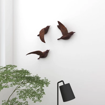 Set Of 3 Metallic Flying Bird Sculptures Wall Decor – Olivia & May