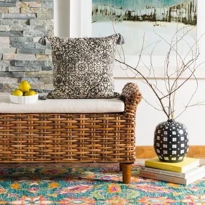 With the suggestive pattern of a finely detailed wall tapestry, the Sidonia Pillow is all at once art and decor made for any styled home decor. This versatile throw pillow displays intricate motifs colored in grey against a cream background with fluffy tassels on all corners for a soft finishing touch. Easy access care and cleaning is made simple with a conveniently located zipper on the back cover. Care Instructions: Pillows tend to flatten during transit, but these tips should help you get that pillow into its fluffiest shape quickly!Once unpacked, gently knead the pillow to help loosen the fibers. Throw the pillow in a dryer on a low tumble setting. The most important tip is to include a sock stuffed with a tennis ball to help “beat” the pillow into its fluffy form. Remove from the dryer, and proudly display your new piece of couch art!