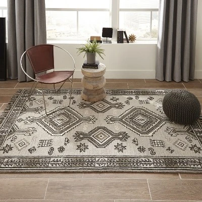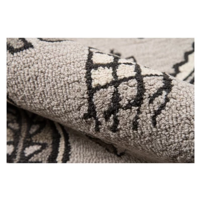 Southwestern motifs get a modern edge in the graphic design elements of this decorative area rug. Available in a stunning array of geometric patterns, each floorcovering features a geometric repeat inspired by iconic geometric prints. Diamonds, crosses, medallions and stars form repeating stripes and intricate linework while tassels at the top and bottom of the rug accentuate the exotic vibe of the with a fun, fringed border. Exceptional in style and composition, each rug is hand hooked from natural wool threads.